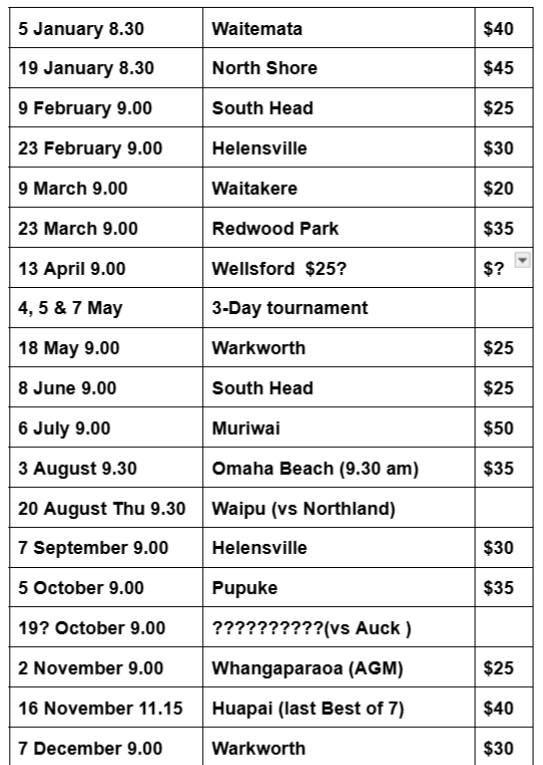 Pre-registration for events by email is usually required. Cards are then pre-printed and available on arrival at pro shop/clubhouse. If places remain, it may be possible to register on the day, one hour prior. If you register to play then can't make it, email Tony nhsga1@outlook.com by 6pm the day before play.